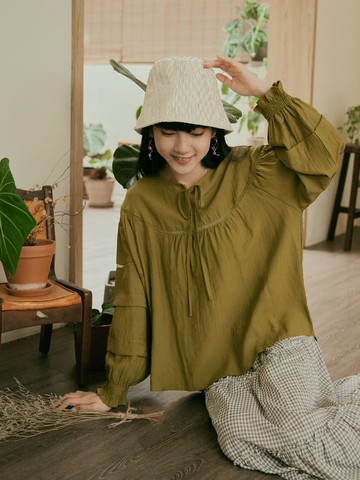 OB嚴選-法式荷葉前抽皺綁帶傘襬上衣