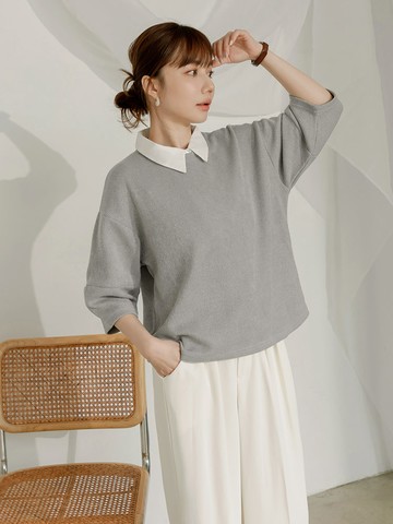 寬鬆透膚鏤空格紋翻領排釦襯衫上衣