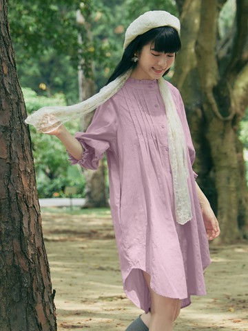 日本進口棉麻面料 乳白色 手工壓褶 襯衫連身裙洋裝