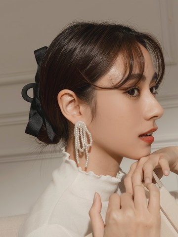 層次珍珠蝴蝶結925純銀耳針耳環/耳夾