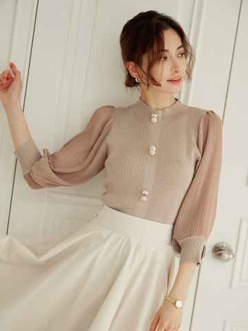 短袖壓紋套頭針織衫-附袖套(1D23L2C0100) - earth music&ecology