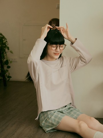 (M) kobe lettuce質感棉質透膚紡紗袖設計粉色長袖上衣