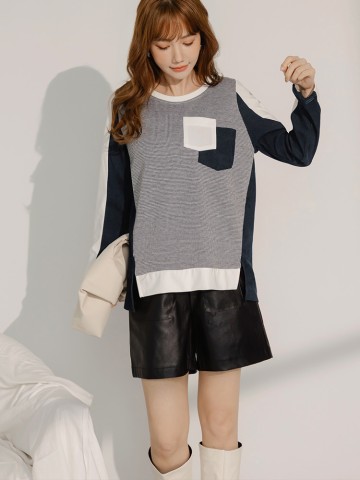 長版寬鬆螢光撞色側開衩針織上衣毛衣