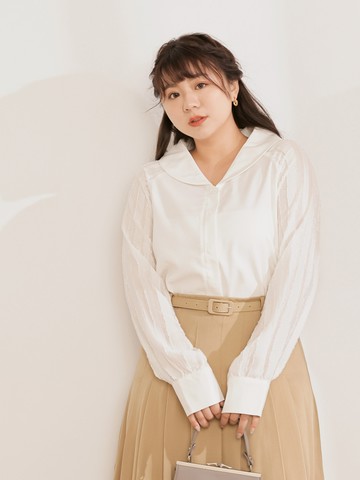 OB嚴選中大尺碼-透明感立領澎袖上衣《AB19723》
