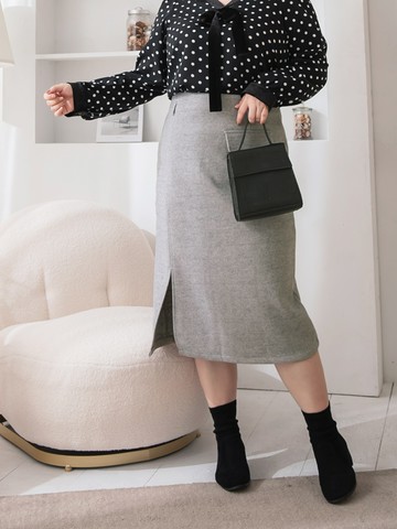 簡約剪裁毛呢側開衩A字中長裙