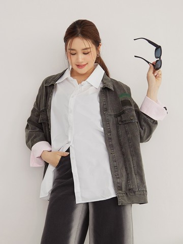 男女共穿.金屬釦大口袋造型車標牛仔外套