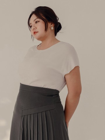 涼爽針織圓領落肩上衣
