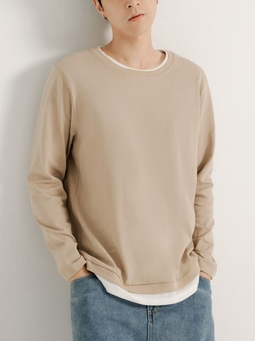 假兩件純棉拼接華夫格長袖上衣