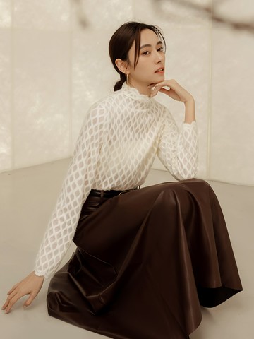 細閃光澤圓領透膚上衣 MISS
