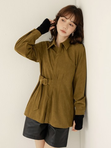(M) lady mint排扣棕色襯衫上衣