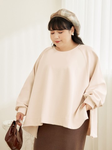 圓領連袖前短後長寬鬆上衣