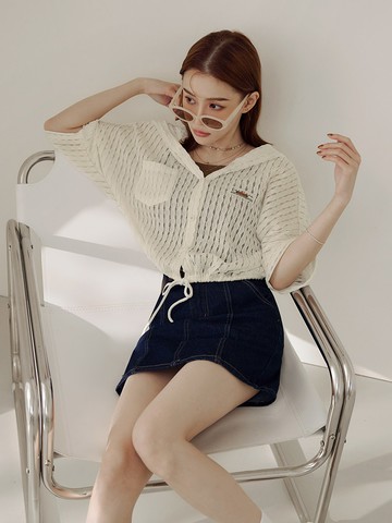短版鏤空針織罩衫