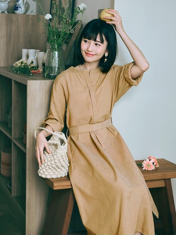 BIRUCHU A-LINE COTTON DRESS - 萊姆綠 棉麻 穿搭 短袖洋裝