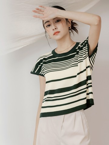 KITTY CUTIE LAND.橫條紋挖袖短TEE