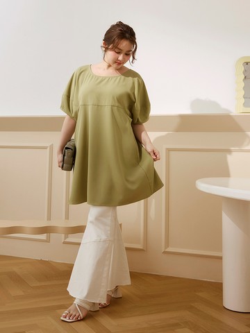 配色縫線合身高腰泡泡袖方領剪裁洋裝(1D32L0H0300) - earth music&ecology