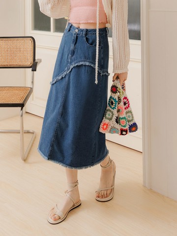 ANNAS 正韓牛仔裙刷鬚牛仔長裙A字裙 半身裙裙子百搭顯瘦單寧韓國