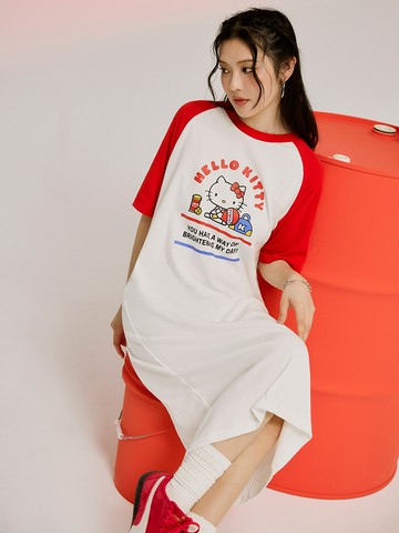 KITTY 運動會.網球印花拉克蘭袖長洋裝