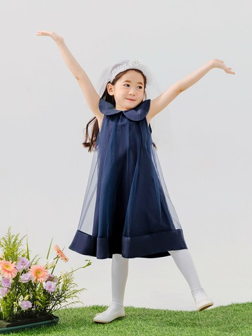 女童簡約深藍色鋼琴禮服演出服公主裙兒童藝考比賽表演服長裙氣質