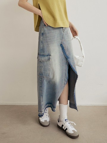 後開岔口袋設計牛仔窄裙(0F000842410) - Lugnoncure