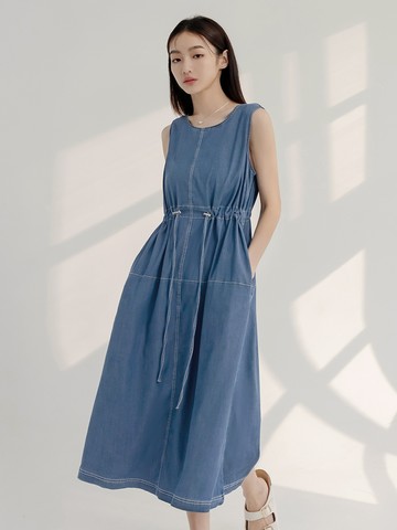 Linen Dress / 膝下長度無袖亞麻洋裝 / 休閒風洋裝 EP-D650