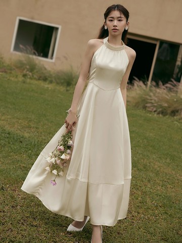 【ʟɪᴏɴɴ現貨】韓系氣質粉色繞頸連衣裙 露背洋裝 寬鬆洋裝 粉色洋裝 公主洋裝 度假洋裝 洋裝 長洋裝