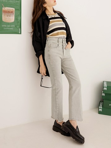 棉質仿舊洗色不收邊褲腳喇叭牛仔褲