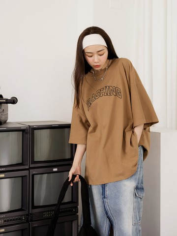 OB嚴選中大尺碼-純棉標語印花寬鬆短袖上衣《AB20225》
