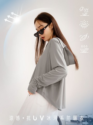 涼感.抗UV荷葉剪裁冰河系連帽防曬外套