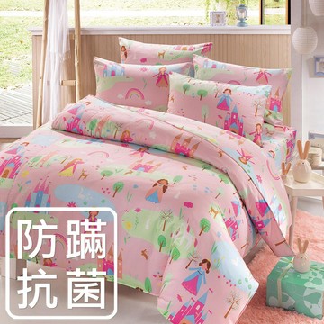 鴻宇 HongYew - 單人床包枕套組 防蹣抗菌100%美國棉-公主城堡-粉