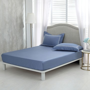 單人床包枕套組/ 天絲棉300織 純色刺繡/ 布魯灰 [鴻宇] 台灣製 - 2363