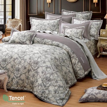 夢之語 60支天絲萊賽爾七件式鋪棉床罩組 (花絮漫漫) 加大6x6.2尺 買即贈水洗枕2入