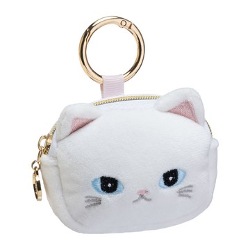 巴掌大小貓形拉鍊鑰匙包-潔白