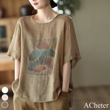 2025春夏新女 日系韓版大碼學院風棉麻亞麻苧麻寬松顯瘦短袖襯衫