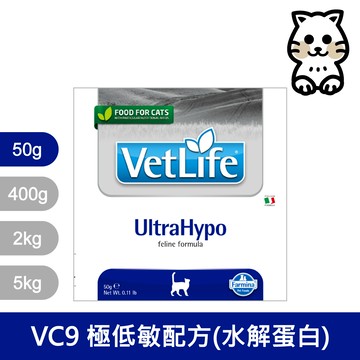 法米納Farmina|VC9 貓用極低敏配方(水解蛋白) 2kg|VetLife獸醫寵愛天然處方貓糧 2公斤 處方貓飼料
