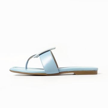 時尚方扣柔軟手感綿羊皮夾腳平底拖鞋水藍色