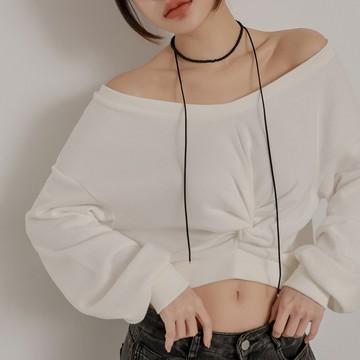 落肩扭結長袖T恤-白【KT222811】