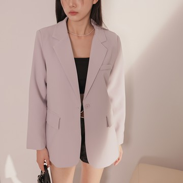 細緻純色玳瑁釦寬版西裝外套