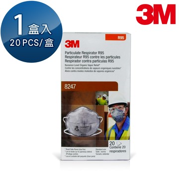 【3M】R95等級工業防塵活性碳成人口罩 微細粉塵 20個/盒 8247 超取限購2盒