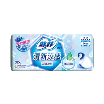 蘇菲清新涼感清涼薄荷超薄護墊_14cm32片