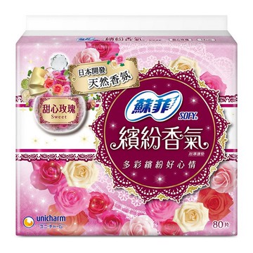 蘇菲繽紛香氣護墊14cm80片_甜心玫瑰
