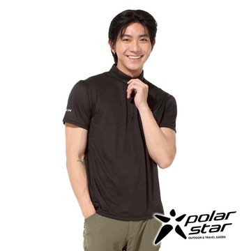 【PolarStar】男倒三角紗立領排汗衣『夜空黑』P24161 戶外 露營 登山 健行 休閒 時尚 透氣 涼爽 排汗 上衣