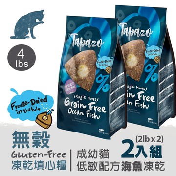 TAPAZO特百滋 凍乾雙饗宴 貓糧 進口營養乾糧+美味佐餐凍乾 907g(2lbs) x2入組 (購買第二件贈送寵喵樂-貓草玩具x1包)