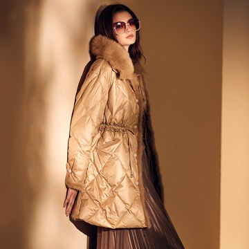 頂級芬蘭藍狐 x 丹麥水貂 x 法國鵝絨_皮草羽絨大衣外套_香檳色【MON'S 流行服飾】