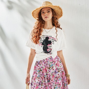 KITTY 經典再現.水鑽印花側腰褶皺TEE