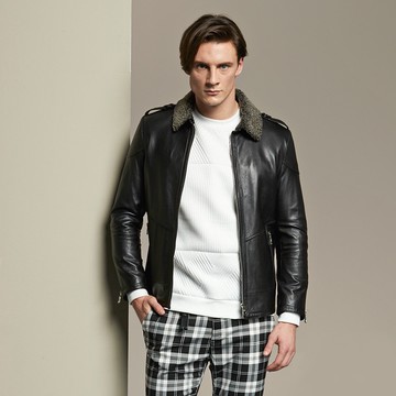 羔羊毛領造型男士羊皮衣/外套(100%羊皮)【MON'S 流行服飾】