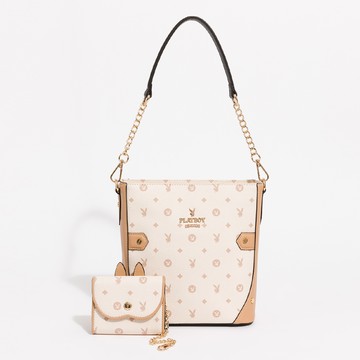 PLAYBOY - 手提包附長背帶 Pure系列 - 米白色/542-6604-01-6