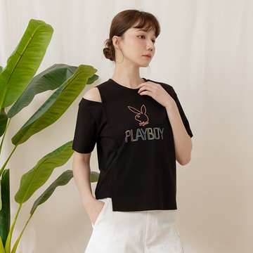 PLAYBOY - OVERSIZE寬版落肩T-SHIRT - 黑色/751-801-09-1
