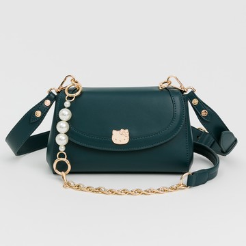 Hello Kitty - Arnold Palmer - 翻蓋斜背包/附寬背帶與鍊條珍珠背帶 Pleasing系列 - 藍綠色/422-4001-56-7