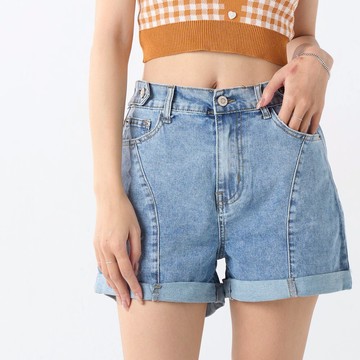 CC.DAILY-斜切反褶牛仔短褲(二色)-女【J2CO053】