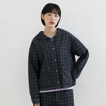 a la sha 水手領片彩色格紋牛仔外套